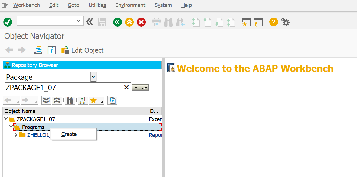 โ๏ธ SE80 → ํด๋น ํจํค์ง ์ ํ → ์ค๋ฅธ์ชฝ ํด๋ฆญ → Create → Program