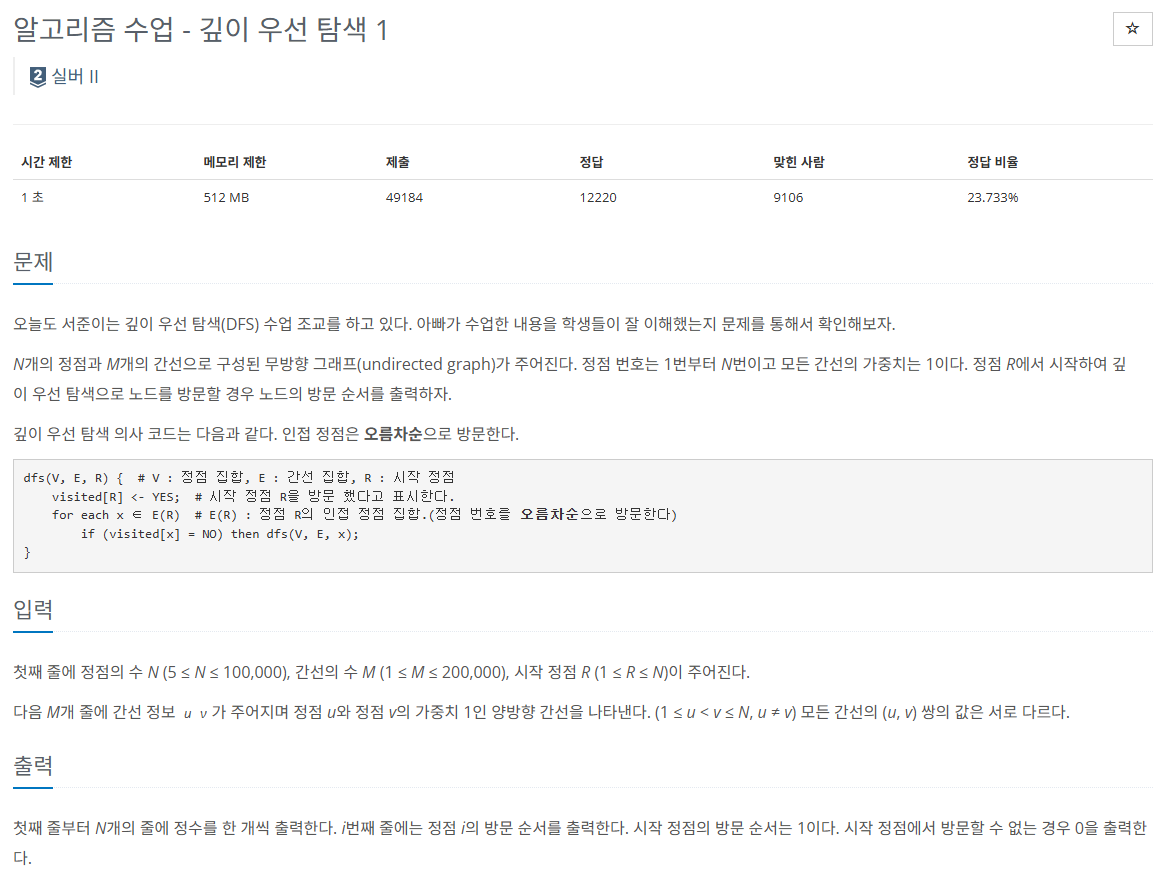 ์ธํฌ๋งํฑ 2024. 10. 31. 18:151. ๋ฐฑ์ค 24479๋ฒ ์๊ณ ๋ฆฌ์ฆ ์์ - ๊น์ด ์ฐ์ ํ์ 1