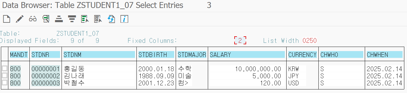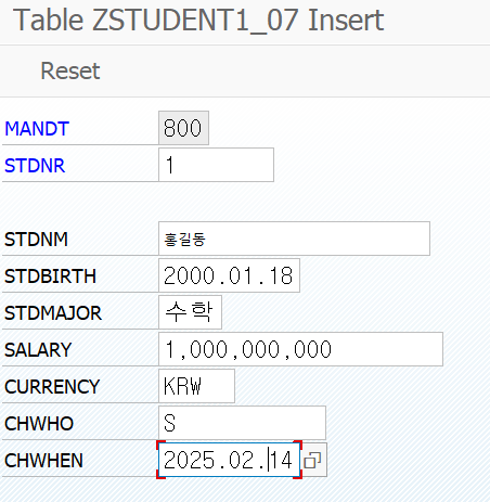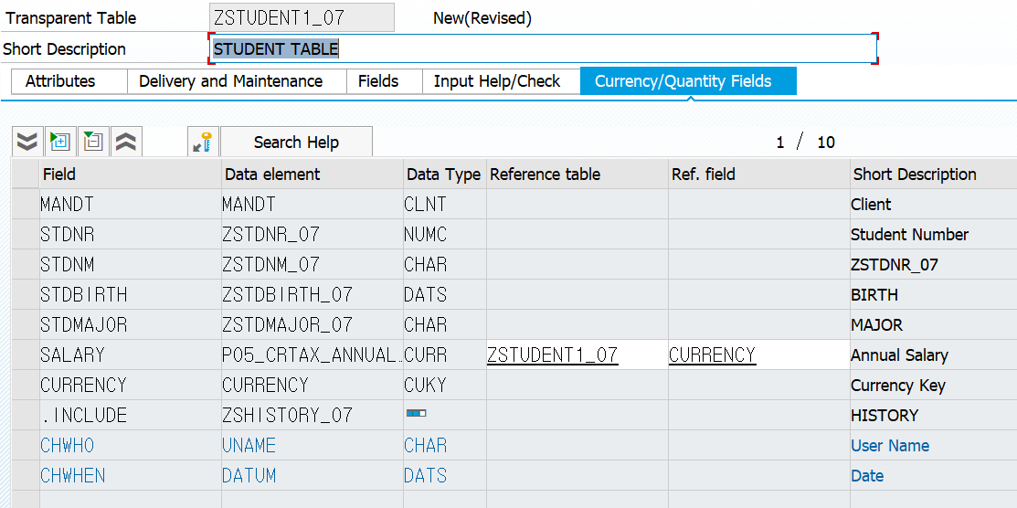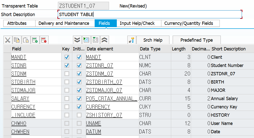 - SE11 → ZSTUDENT_07 ํ ์ด๋ธ ์ ํ