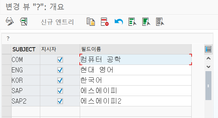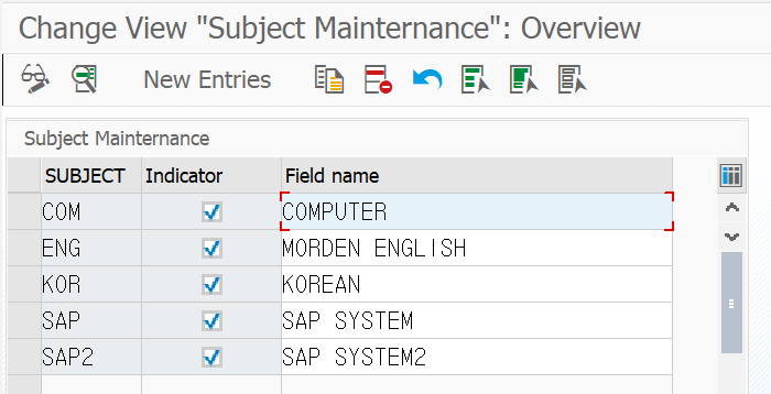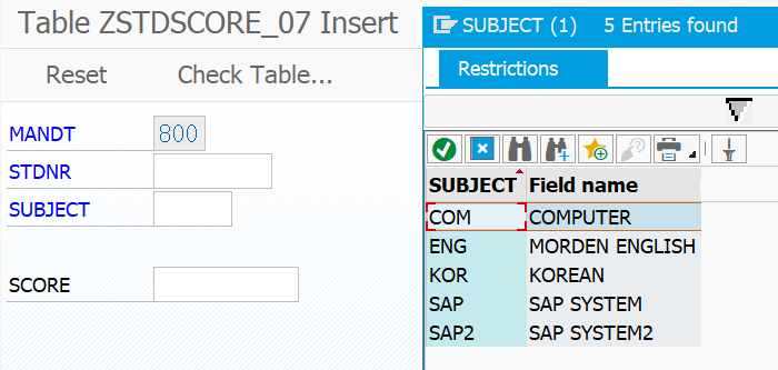 โ ๊ธฐ์ค ํ ์ด๋ธ (ZSTDSUBJECT_07) - Utilties - Table Contents - Create Entries