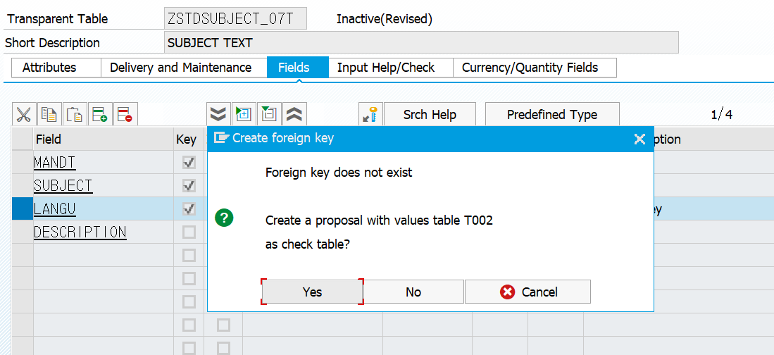 2. ZSTDSUBJECT_07T ์ LANGU ํ๋ ์ธ๋ํค ์ค์ ํ๊ธฐ