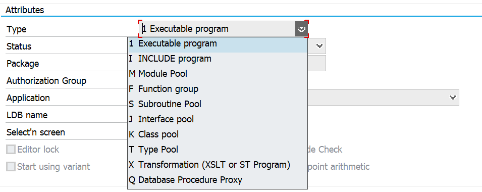 ํ๋ก๊ทธ๋จ์ ์ ํ์ ํ์ธํ๋ ค๋ฉด SAP GUI์์ ์์ค ์ฝ๋ ์ฐฝ > Goto > Attributes๋ก ์ด๋ํ๋ฉด ๋ฉ๋๋ค.