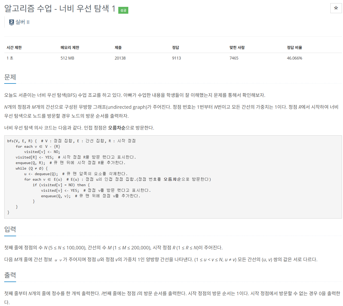 [๋ฐฑ์ค] 24444๋ฒ: ์๊ณ ๋ฆฌ์ฆ ์์ - ๋๋น ์ฐ์ ํ์