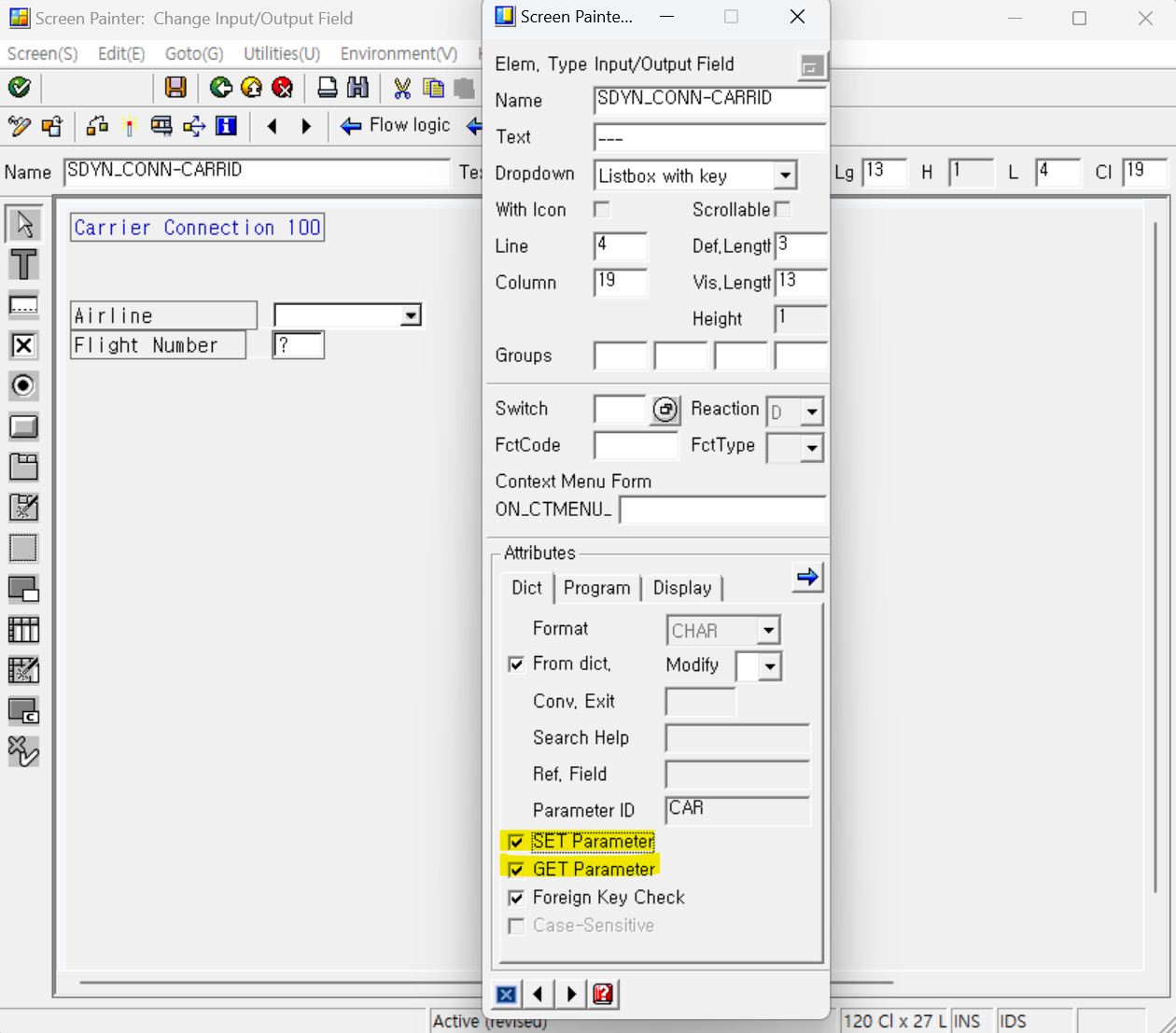 FIELD: SDYN_CONN-CARRID, SDYN_CONN-CONNID.