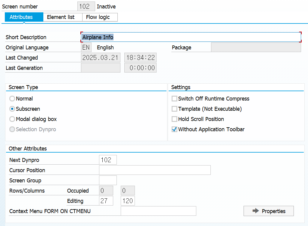 - SCREEN 100: ๋ฉ์ธ ํ๋ฉด, ๋ ๊ฐ์ Subscreen Area๋ฅผ ํฌํจ